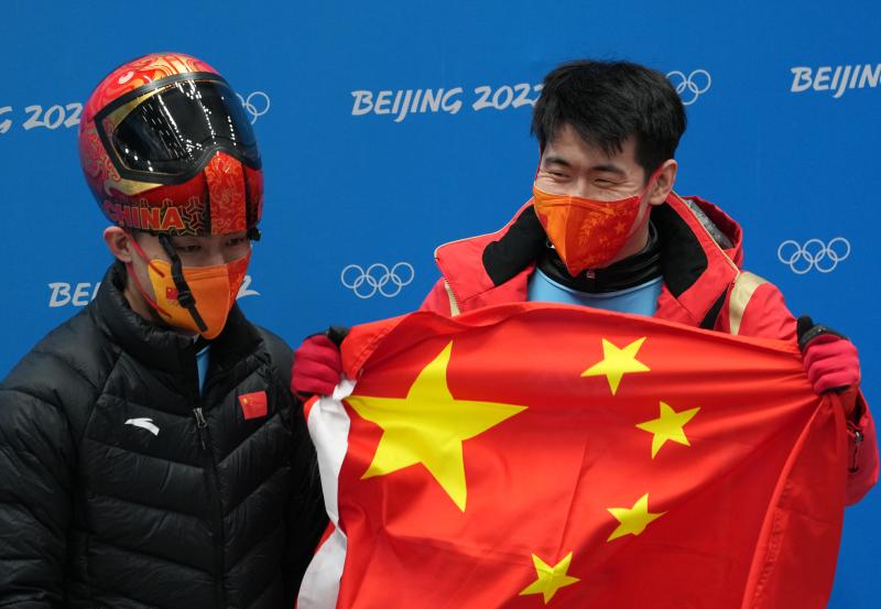 新华社相片,北京,2022年2月11日\n (新华全媒+·北京冬奥会)钢架雪车——须眉钢架雪车:中国选手闫文港夺得铜牌\n 2月11日,中国选手闫文港(右)和队友殷正在比赛后。\n 当日,在国度雪车雪橇中心举行的北京2022年冬奥会须眉钢架雪车比赛中,中国选手闫文港夺得铜牌。\n 新华社记者 孙非 摄
